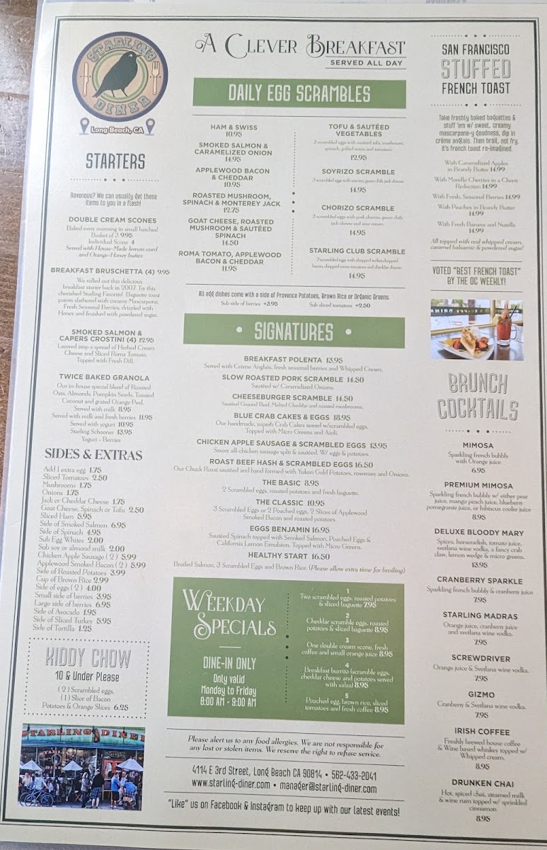Welcome to Starling Diner, a charming gem tucked away at 4114 E 3rd St in Long Beach, CA—a place where the essence of a classic diner meets a vibrant, modern twist. From the moment you step inside, the inviting atmosphere, filled with laughter and friendly chatter, assures you that you are about to embark on a delightful culinary journey.