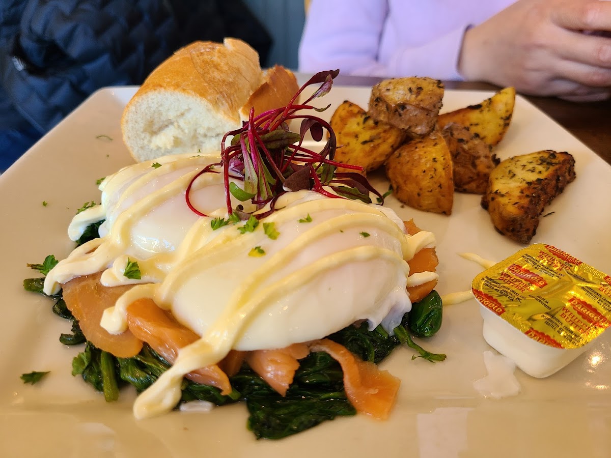 Looking for something unique? Dive into their Blue Crab Cake & Eggs, where perfectly seasoned crab cakes meet fluffy eggs, or the Eggs Benjamin, which tantalizes with sautéed spinach and smoked salmon. The French toast, recommended by satisfied patrons, is not to be missed and presents itself as an unexpected delight, each bite infused with a fusion of sweetness and warmth.